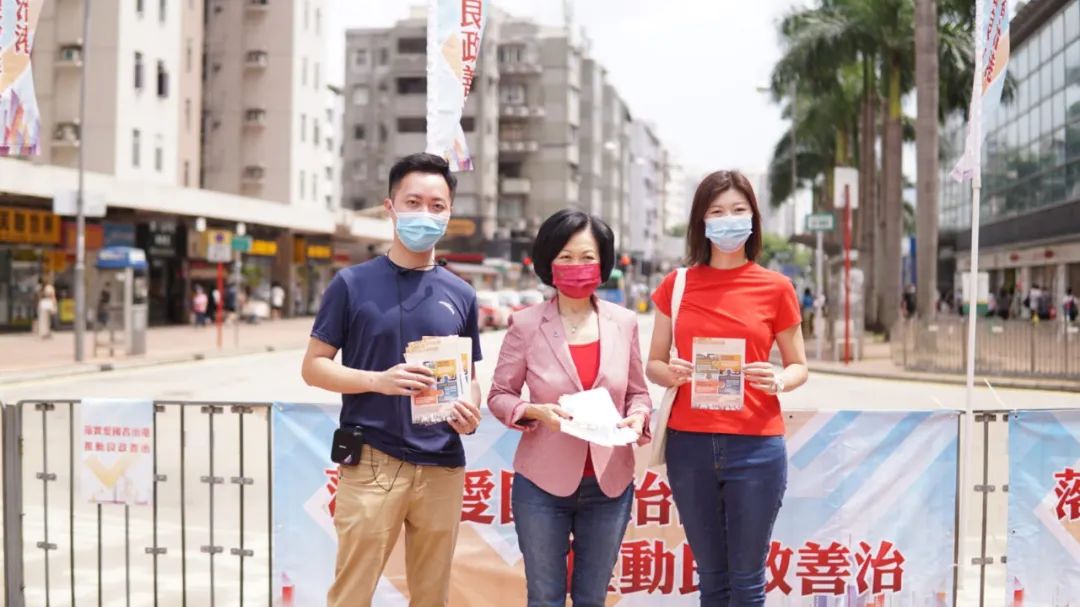 民建联立法会议员葛珮帆11日与全国政协委员黄少康在尚德派发宣传单张。她指出,大家都期望新制度让香港真正摆脱政治斗争内耗,集中精力发展经济民生,争取尽快恢复正常通关。