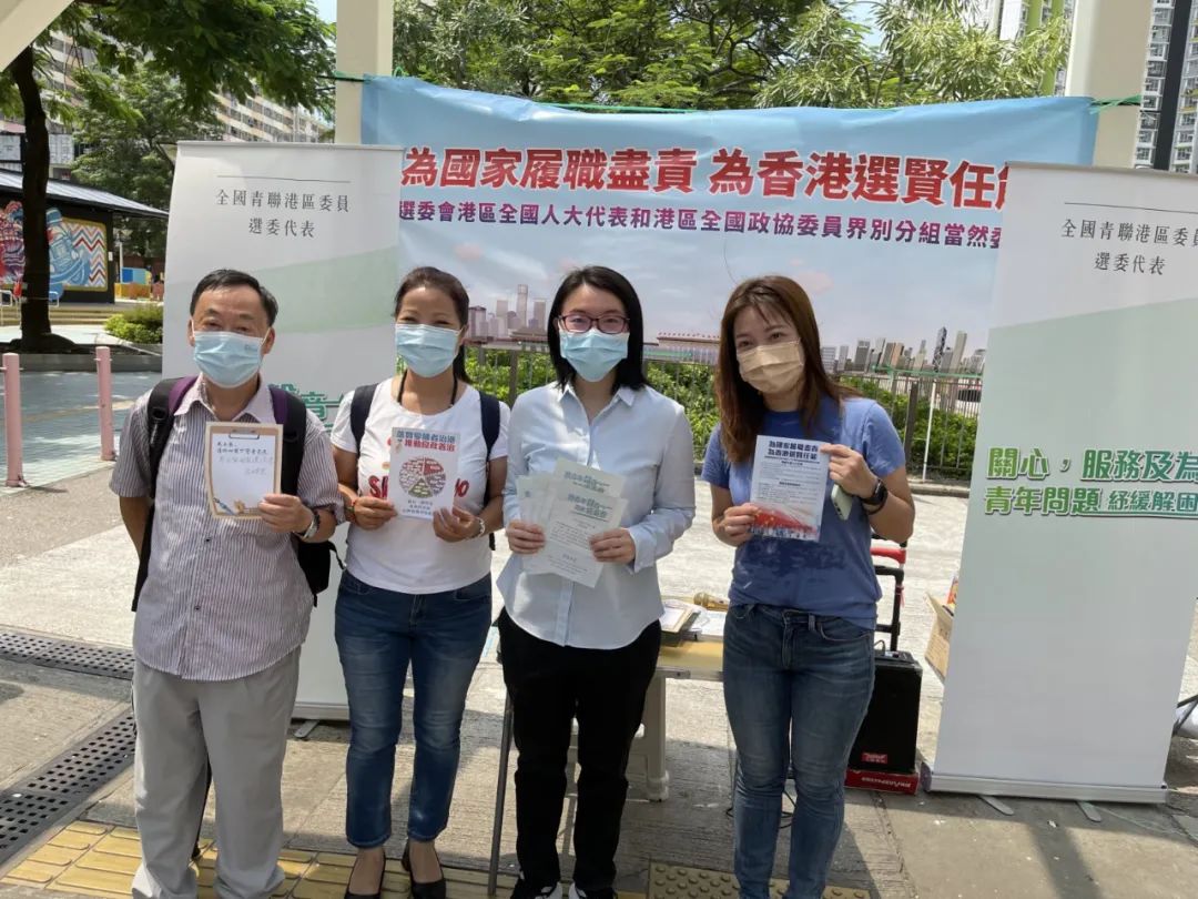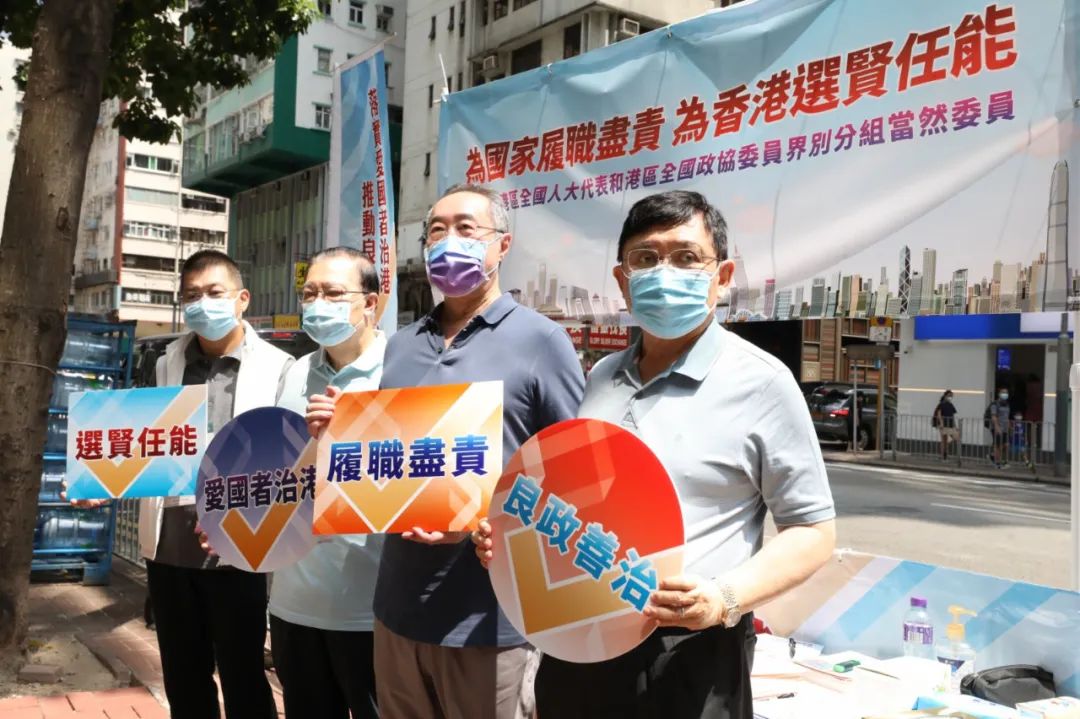 全国人大常委会委员谭耀宗,全国政协常委唐英年、吴良好,全国政协委员曾智明、陈清霞、郭炳联11日一起在湾仔大有广场外的街站派发宣传单,向市民宣传选委会第五界别港区全国人大代表和港区全国政协委员界别分组政纲,听取市民意见,希望透过街站令更多人了解新选举制度。