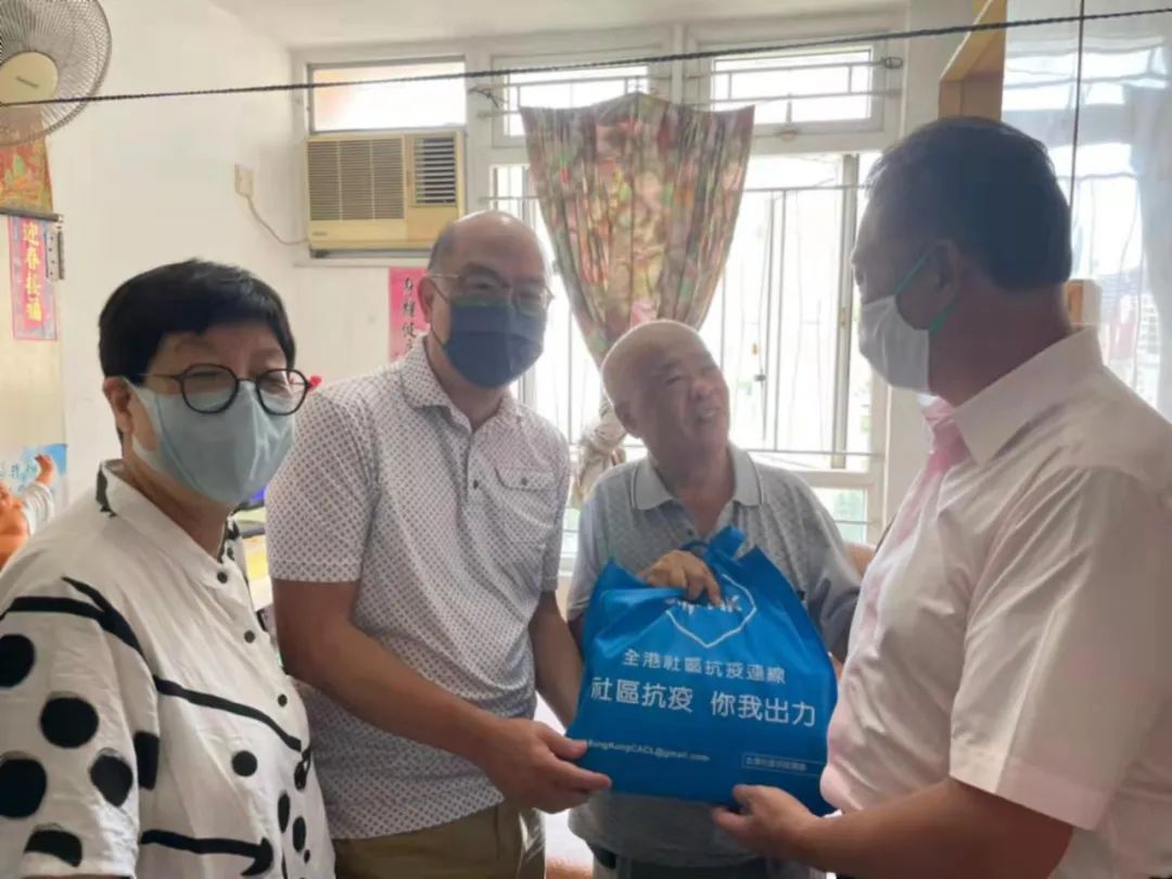 港区全国人大代表陈振彬、蔡素玉、谭志源,慰问观塘云汉村长者,表达关心,倾听意见。(香港文汇网图片)