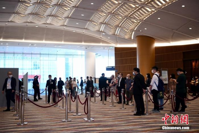 图为香港选民排队入场。(中新社记者 李志华 摄)