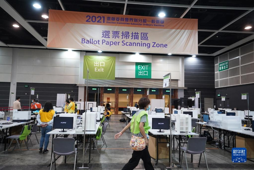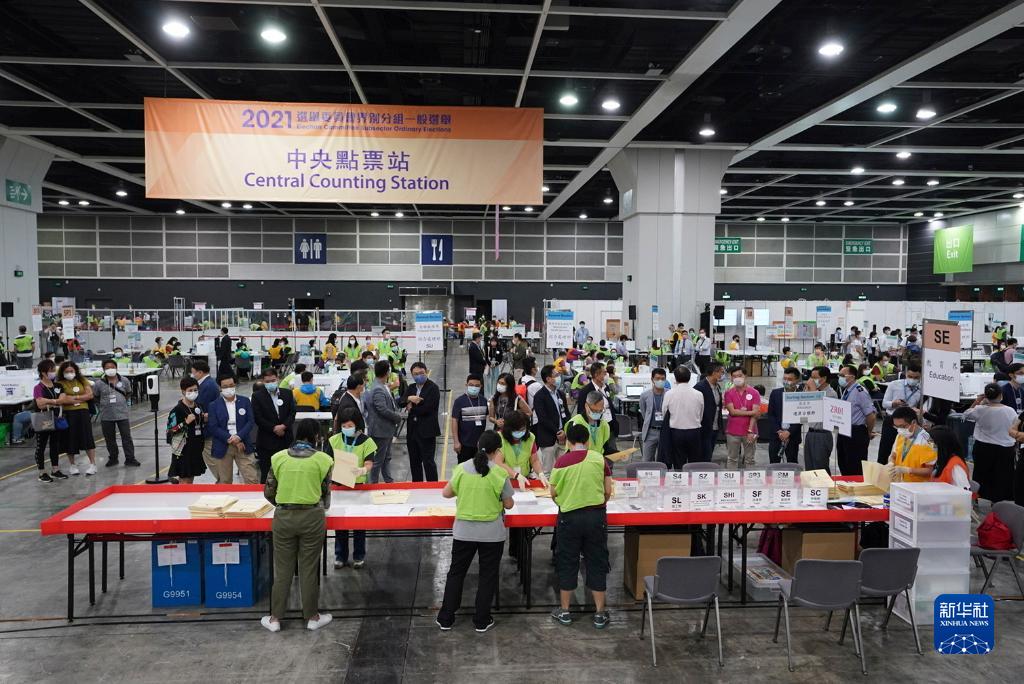 9月19日,2021年香港特别行政区选举委员会界别分组一般选举举行。这是工作人员开始点票工作。(新华社记者 吕小炜 摄)