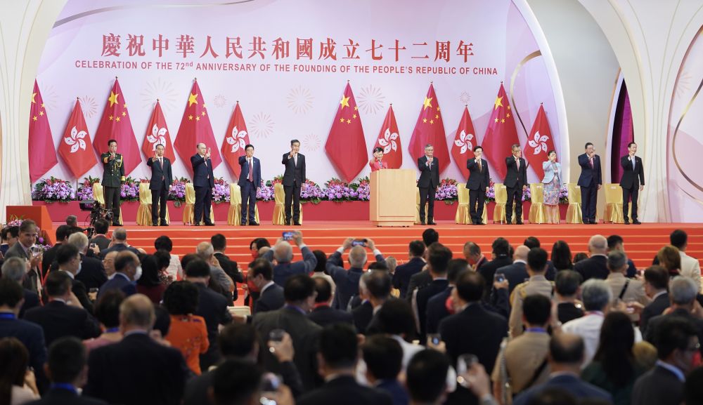 香港特区政府10月1日上午举行升旗仪式和酒会,庆祝中华人民共和国成立72周年。