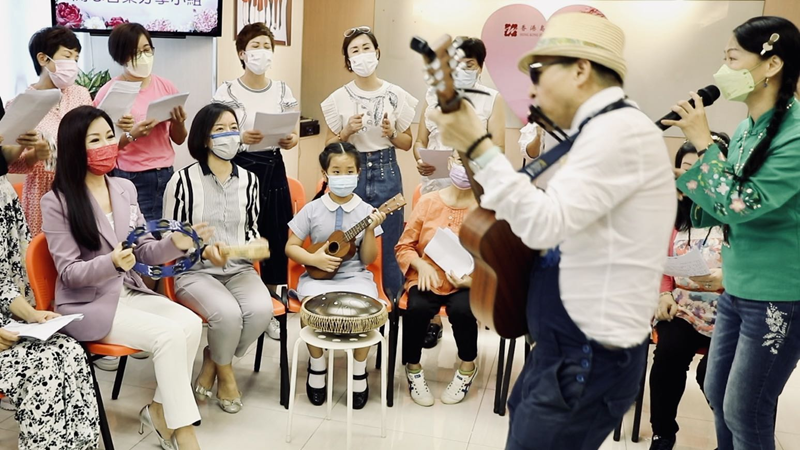 卢新宁副主任与“情绪疏导 音乐分享”课程学员合唱歌曲。(图片来源:中央政府驻港联络办)