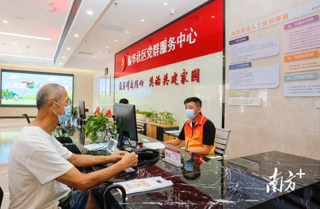 振华社区党群服务中心内地港澳人士服务专窗,办理医??ǖ母郯娜耸吭谔峤蛔柿?。(南方+ 叶志文 拍摄)