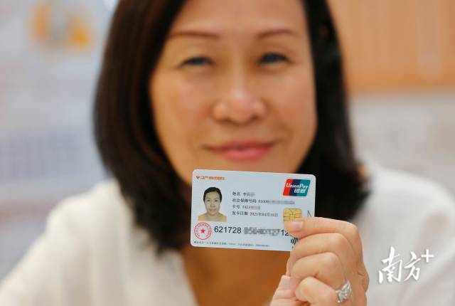 成功申办医保的李女士展示自己申请的医保卡。(南方+ 叶志文 拍摄)