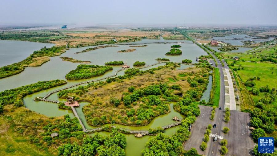 这是5月13日拍摄的山东黄河三角洲国家级自然保护区景色(无人机照片)。(新华社记者 郭绪雷 摄)