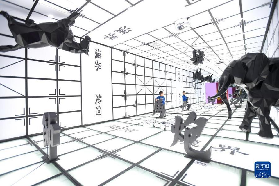 2019年9月21日,小朋友在湖南省长沙市“字在其中”汉字国潮艺术展上参观。(新华社记者 陈泽国 摄)