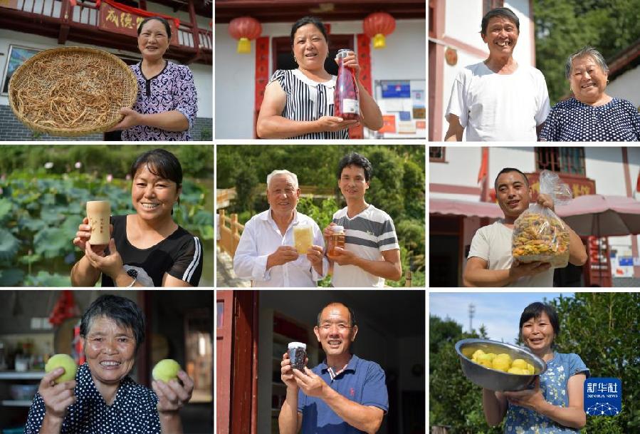 拼版照片:这是江西省井冈山市神山村村民的笑脸合集(2020年7月15日摄)。地处山区腹地的神山村曾是江西省井冈山市最偏远的贫困村之一,贫困发生率曾达30%以上。当地通过发展扶贫产业和乡村旅游,村民收入显著增加,并在2017年2月正式脱贫。(新华社记者 彭昭之 摄)