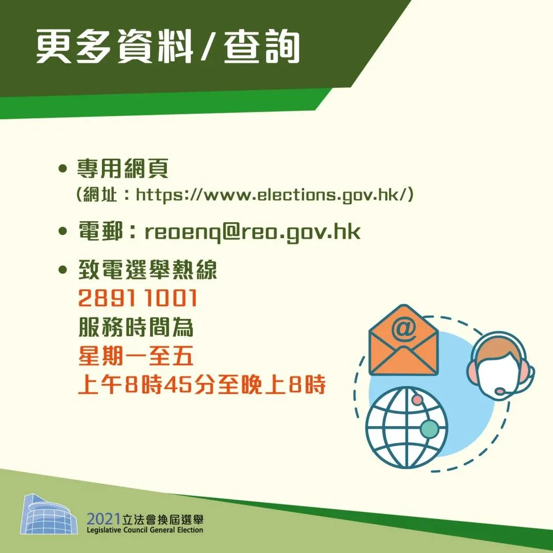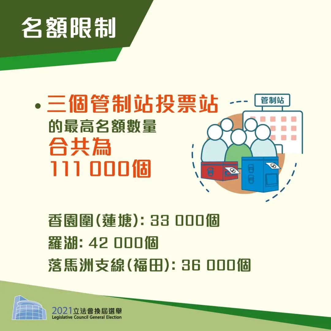 2. 身在内地的已登记选民(但不包括选举委员会界别的选民),在成功登记及符合相关的指明条件后,可在 2021 年立法会换届选举日的投票时段(即上午8时半至晚上10时半期间)在管制站投票站投票。