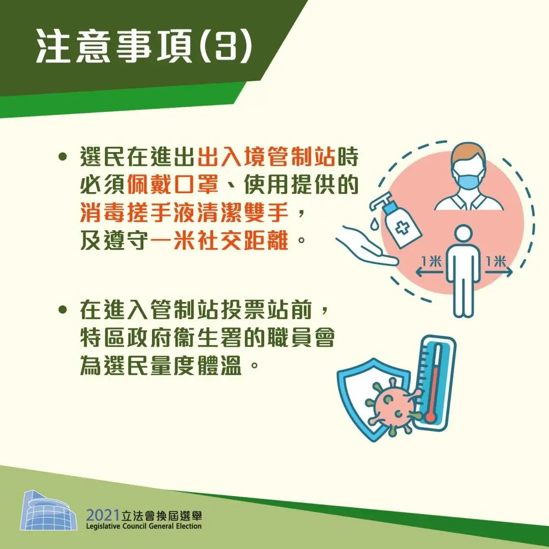 3. 为免增加管制站投票站的病毒传播风险,票站会采取全闭环式管理。