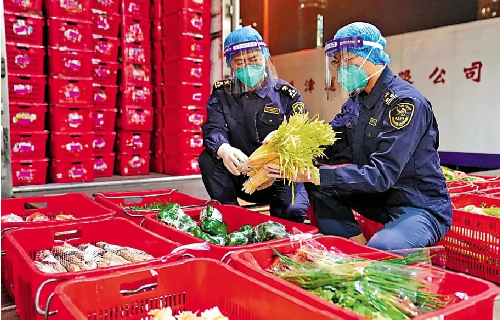 内地与香港的防控、交通、海关、口岸等各部门联动配合,全力保障供港鲜活产品通关。文锦渡海关介绍,已开足验放通道,确??缇吵盗炯吹郊捶?、顺利接驳装菜,并实施了为在途菜车延时通关、开设供港鲜活绿色通道、进行智慧验放及非侵入式查验等通关便利化措施。