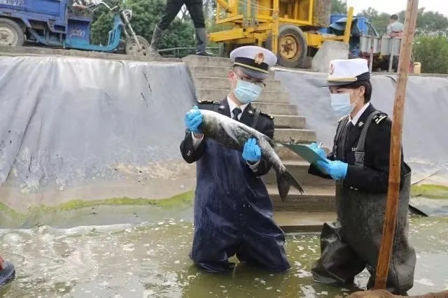 佛山海关关员对供港塘鱼进行检验检疫。