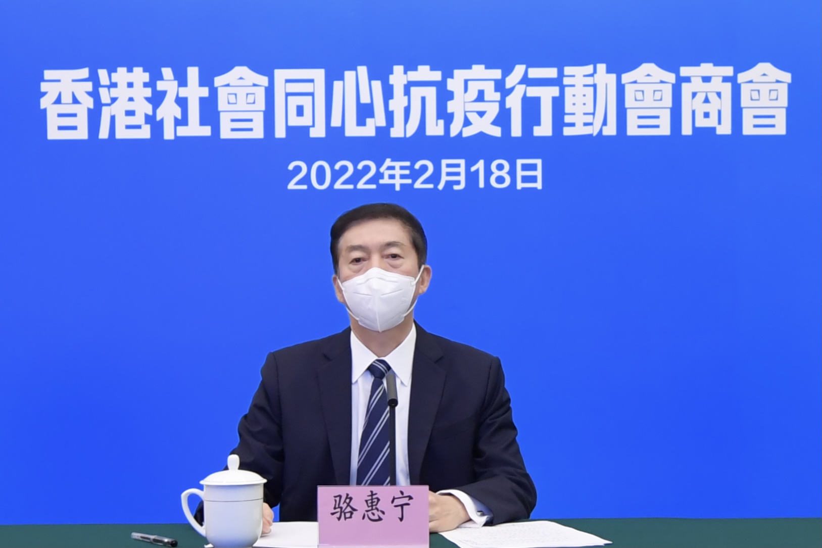 本网讯 2月18日下午,香港社会各界同心抗疫会商会在港举行,中联办主任骆惠宁主持并讲话,香港特区政府政务司司长李家超,中联办副主任陈冬、尹宗华,以及社会各界代表人士通过网络视频参加。会议认真贯彻习近平总书记对香港抗疫工作的重要指示精神,号召社会各界团结一致、同心抗疫,会商谋划了支持特区政府防疫抗疫的16项举措。