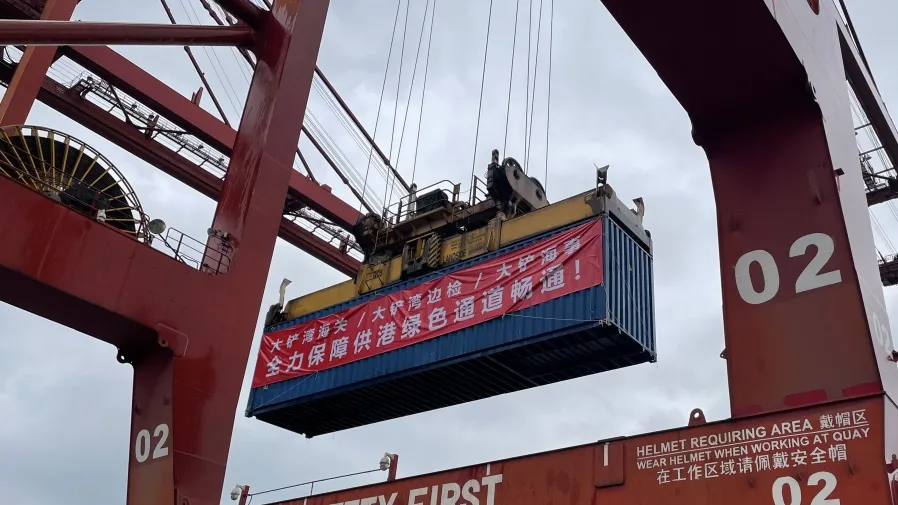 2月21日18时30分,随着满载200吨供港蔬菜的驳船从深圳大铲湾码头驶航香港,深圳港大铲湾、妈湾和盐田集装箱港区全面开通供港物资水路运输快速通道,保障香港同胞生活物资供应。