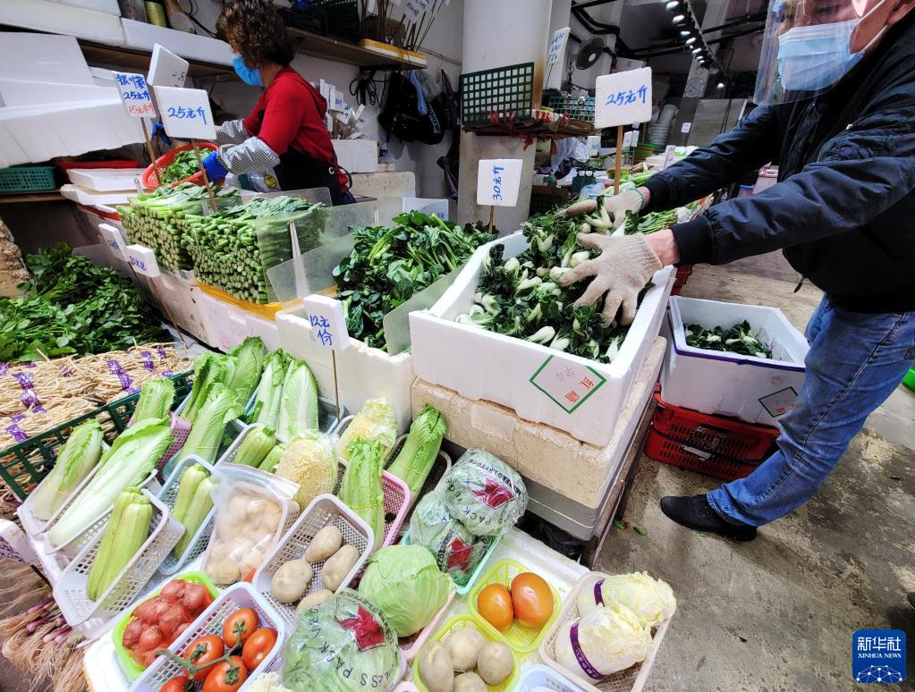 “西蓝花25元(港元,下同)2个,娃娃菜15元1包,芹菜5元1扎。这一袋子菜买下来不到80元,要是在前段时间估计得超过100元。”前来买菜的香港市民林先生说,这两天菜价降下来一些,但比疫情前略贵。特殊时期,这个价格可以接受。