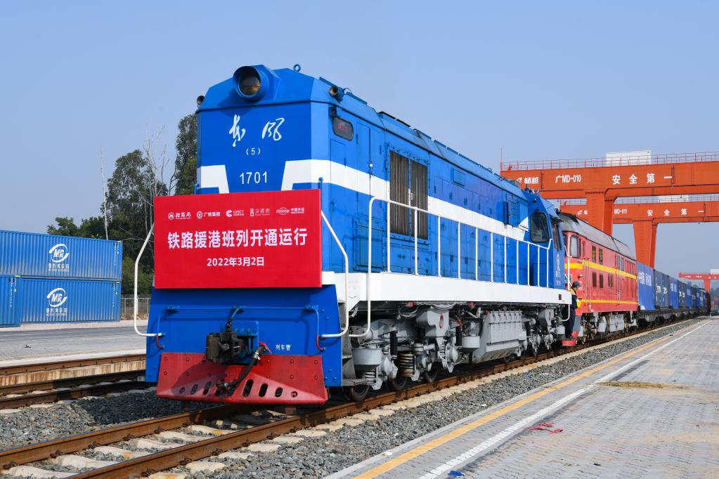 3月2日,首趟“中央援港 同心抗疫”铁路援港班列驶出深圳平湖南国家物流枢纽。(新华社记者 梁旭 摄)