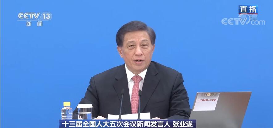 3月4日,十三届全国人大五次会议新闻发布会在北京人民大会堂新闻发布厅举行,由大会发言人张业遂就大会议程和人大工作相关问题回答中外记者提问。