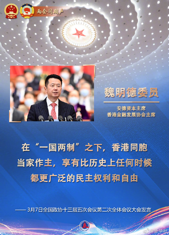 各位委员,香港第五波新冠肺炎疫情暴发后,习近平总书记十分关心,专门作出重要指示,中央全力支援香港抗疫,积极调配医护人员,有力统筹防疫物资,着力保障民生所需。我们坚信,在中共中央坚强领导下,以港为家园,以国为后盾,我们一定能打赢这场抗疫阻击战。疫情过后,香港必将重现“东方之珠”的光彩,必将更好发挥独特优势和作用,为世界和平发展作出贡献,共同推动构建人类命运共同体。