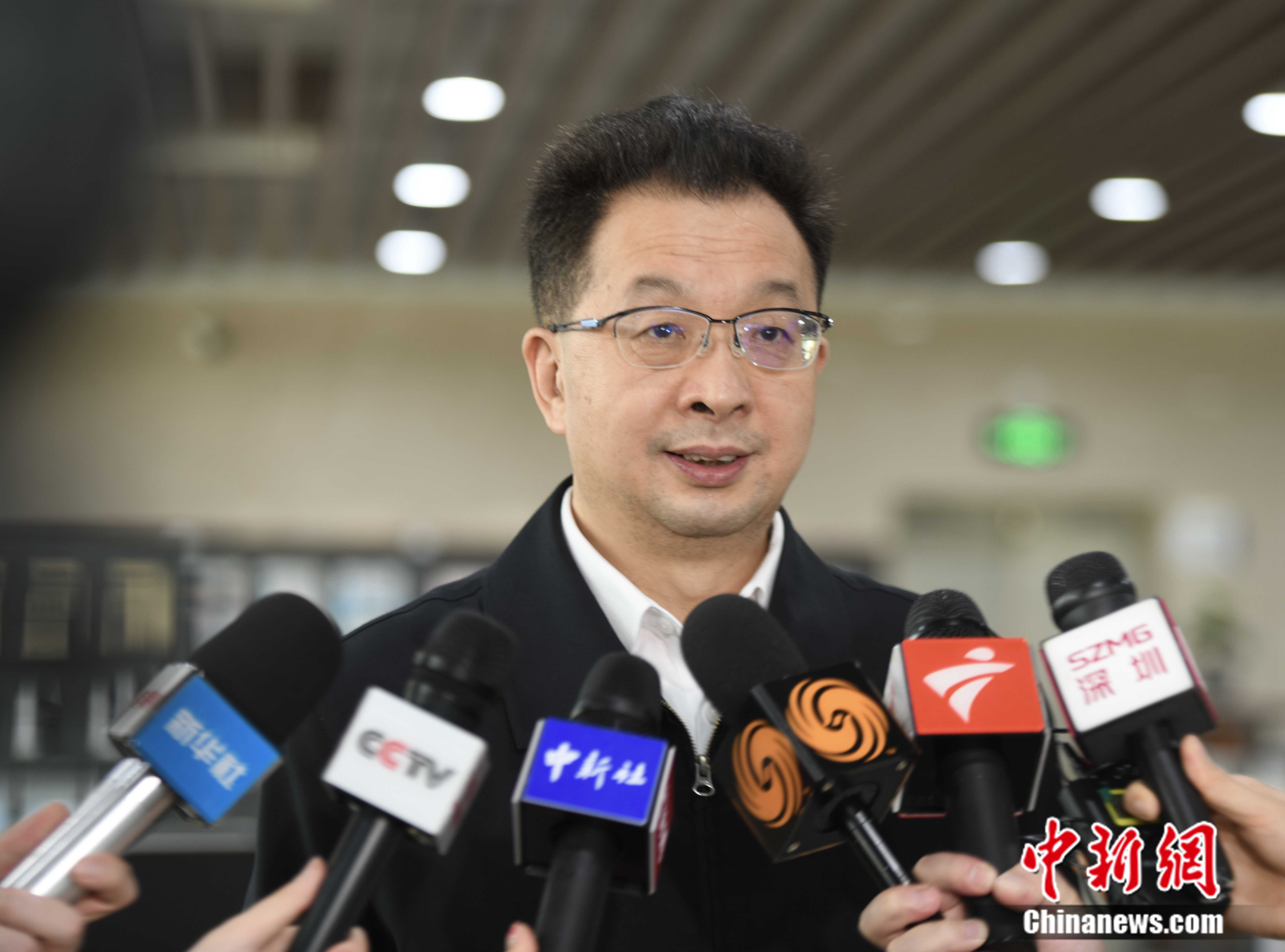 图为内地支援香港抗疫专班医疗物资供应组组长何亚琼接受采访。(朱族英 摄)