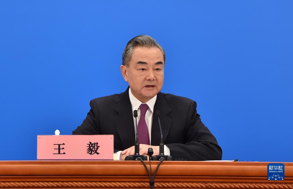 3月7日,十三届全国人大五次会议在北京人民大会堂举行视频记者会,国务委员兼外交部长王毅就中国外交政策和对外关系回答中外记者提问。(新华社记者 陈钟昊 摄)