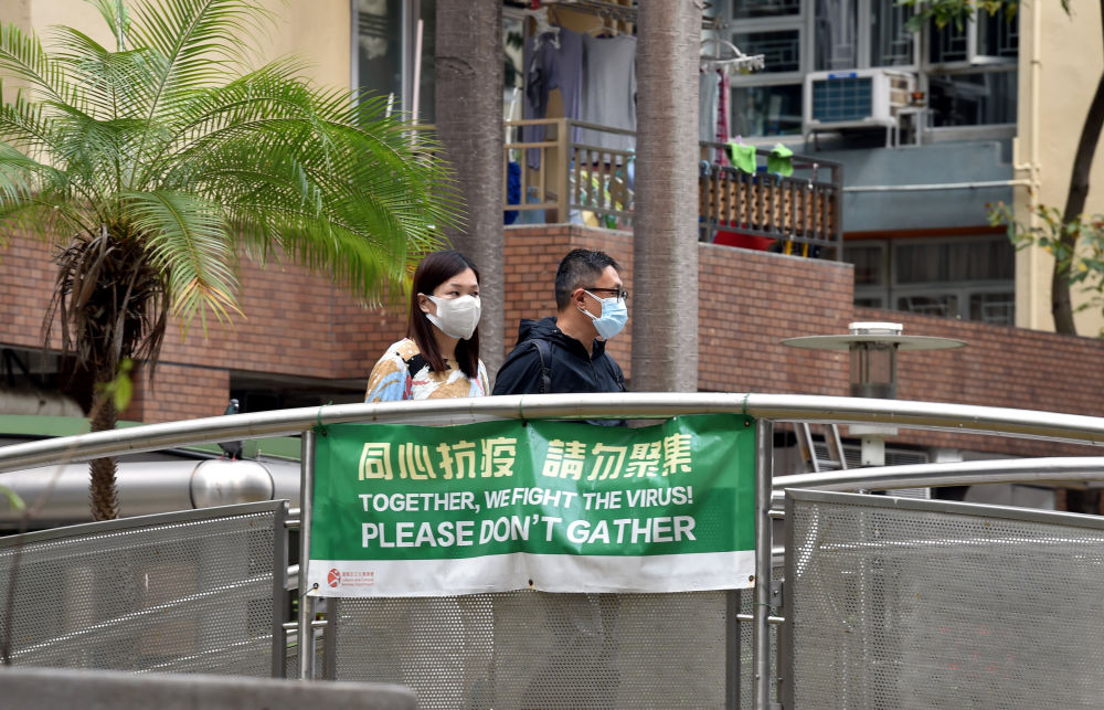 3月17日,在香港美孚,市民佩戴口罩外出。(新华社记者卢炳辉 摄)