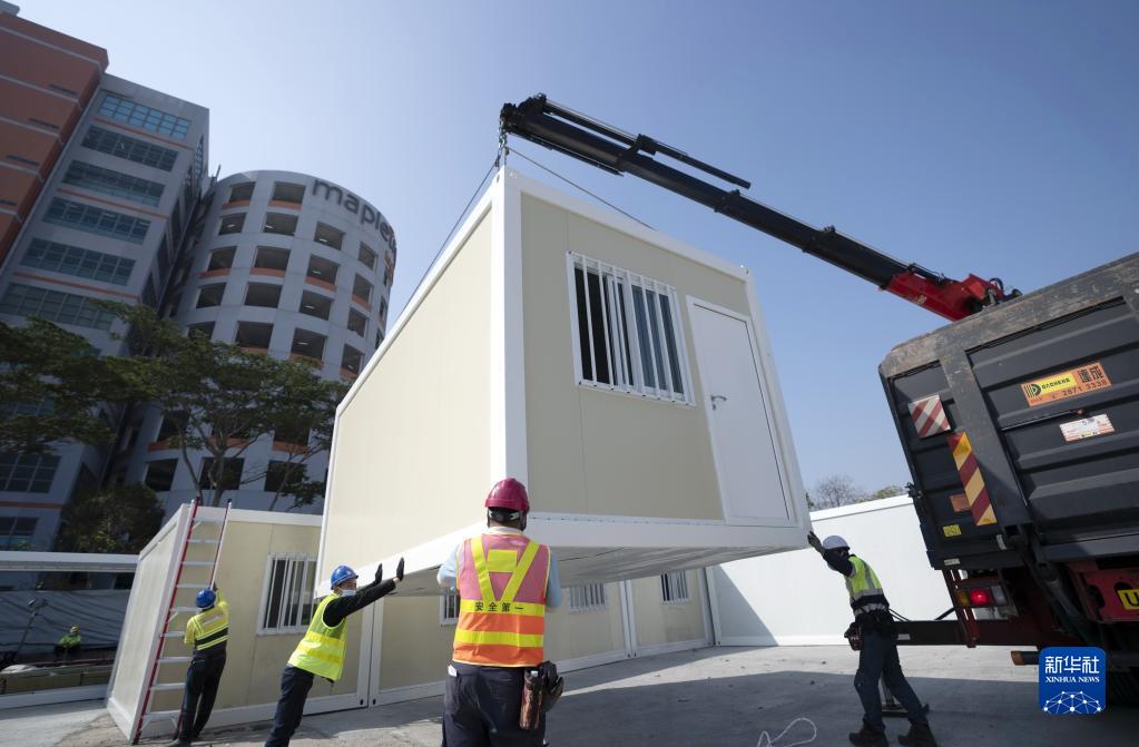 2月26日,工作人员在青衣社区隔离设施项目建设现场施工。(新华社记者 吕小炜 摄)