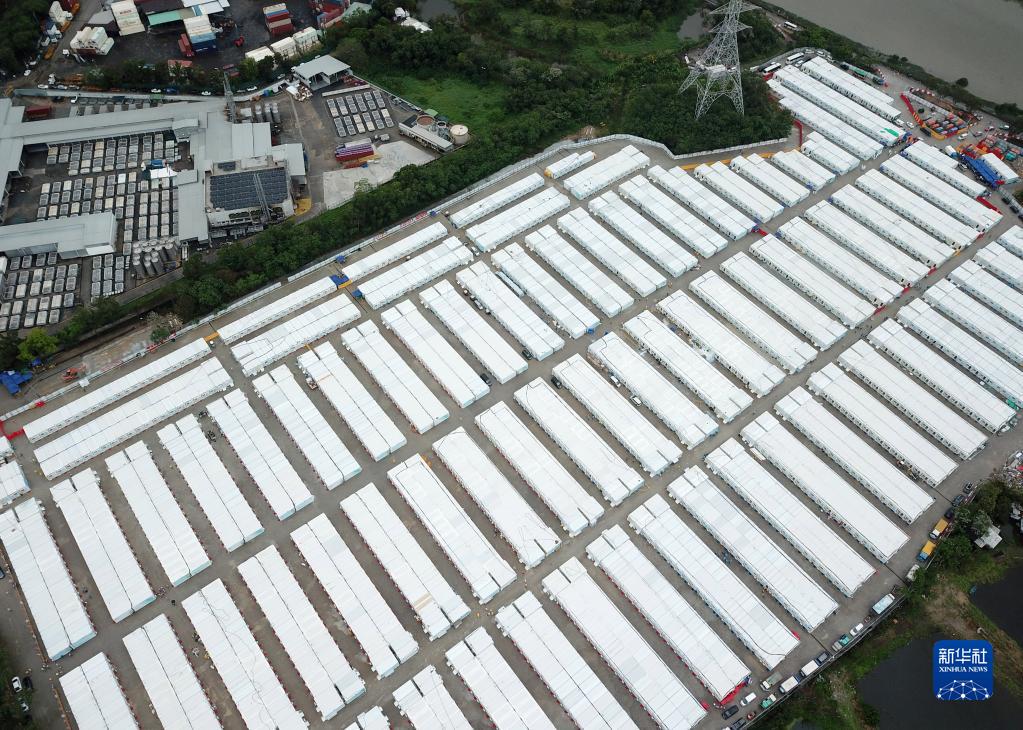 3月16日拍摄的中央援建香港洪水桥社区隔离设施。(新华社记者 吴晓初 摄)