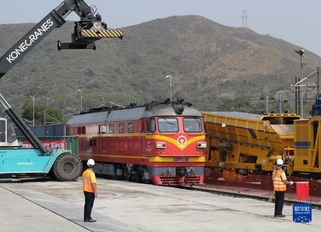 3月2日,“中央援港 同心抗疫”铁路援港班列抵达香港。(新华社记者 李钢 摄)