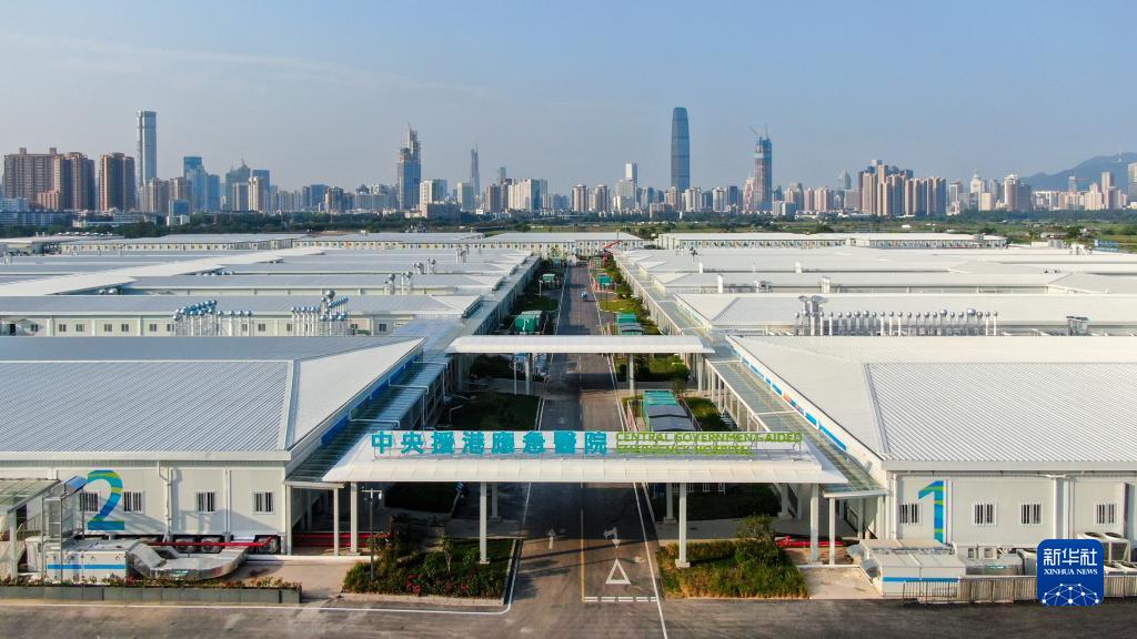 这是中央援港应急医院和落马洲方舱设施竣工交付仪式现?。?月6日摄)。(新华社记者 梁旭 摄)