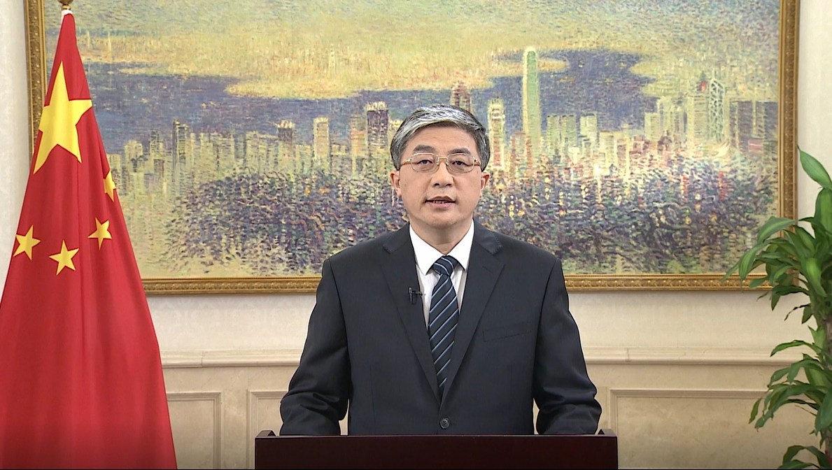 罗永纲副主任视频致辞。(图片来源:中央政府驻港联络办)