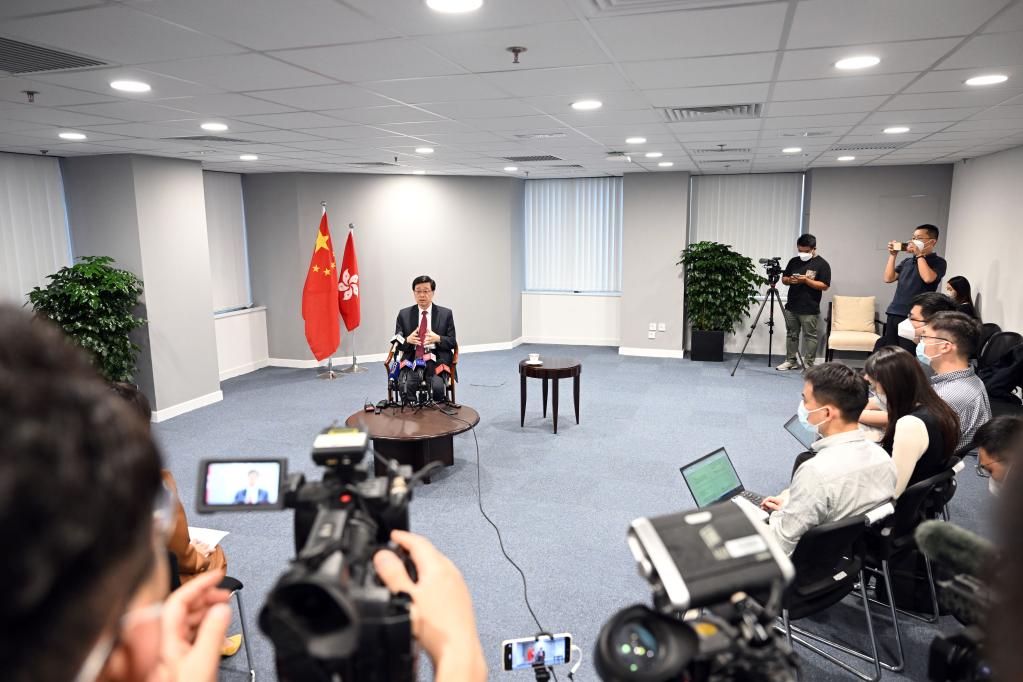 香港特别行政区候任行政长官李家超在香港接受记者采访。(新华社记者 金良快 摄)