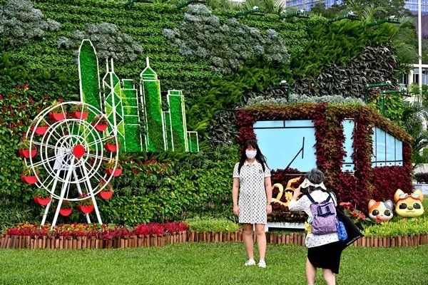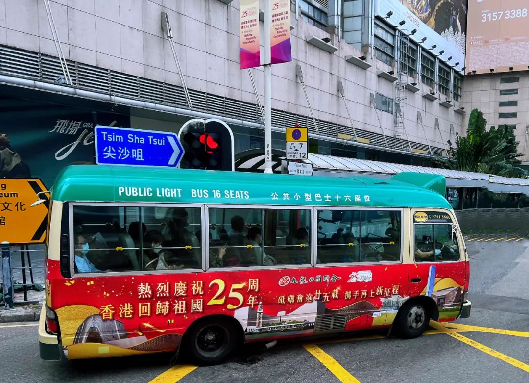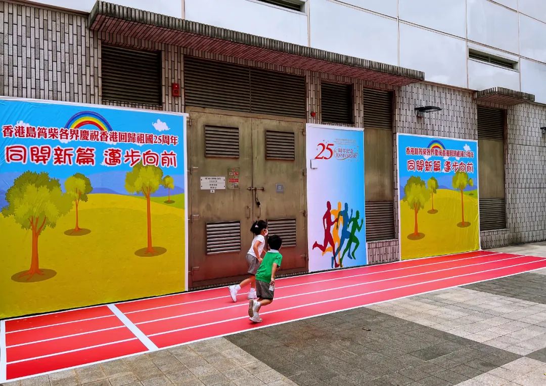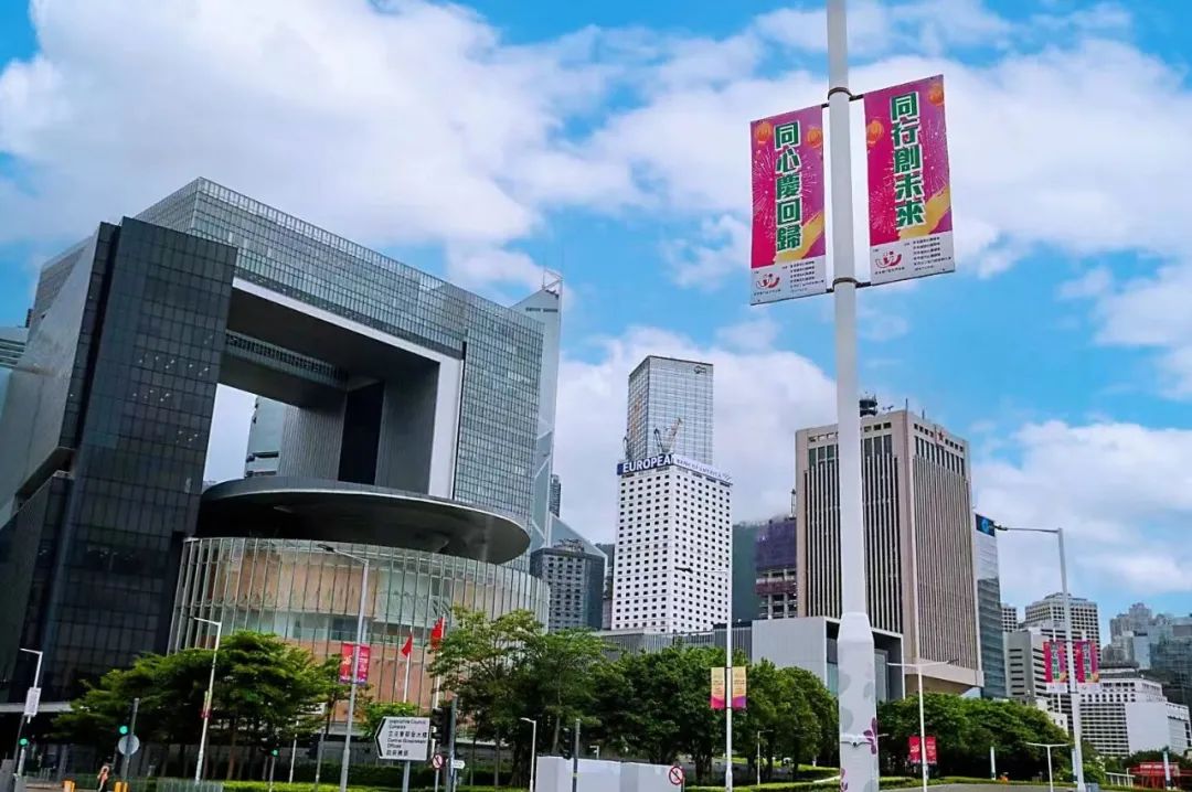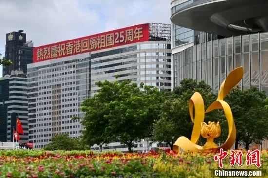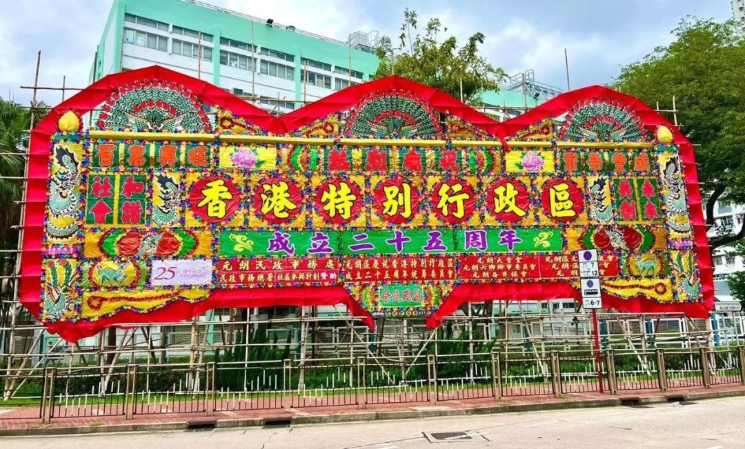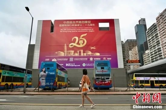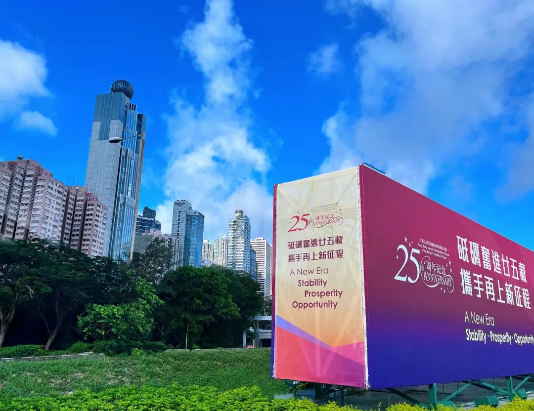 “热烈庆祝香港回归祖国25周年”“同心庆回归 同行创未来”“砥砺奋进廿五载 携手再上新征程”……无论在高楼大厦的外墙上,还是在道路两旁的灯柱上,抑或在悠悠行驶的叮叮车车身,一幅幅庆祝标语映入眼帘,一面面红旗在蓝天白云映衬下格外鲜艳。