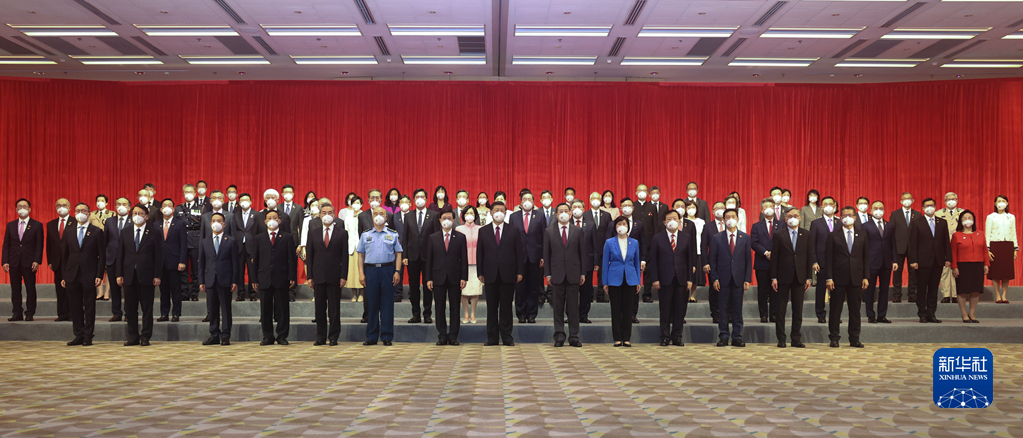 7月1日上午,国家主席习近平在香港特别行政区行政长官李家超的陪同下,会见香港特别行政区新任行政、立法、司法机关负责人。(新华社记者 鞠鹏 摄