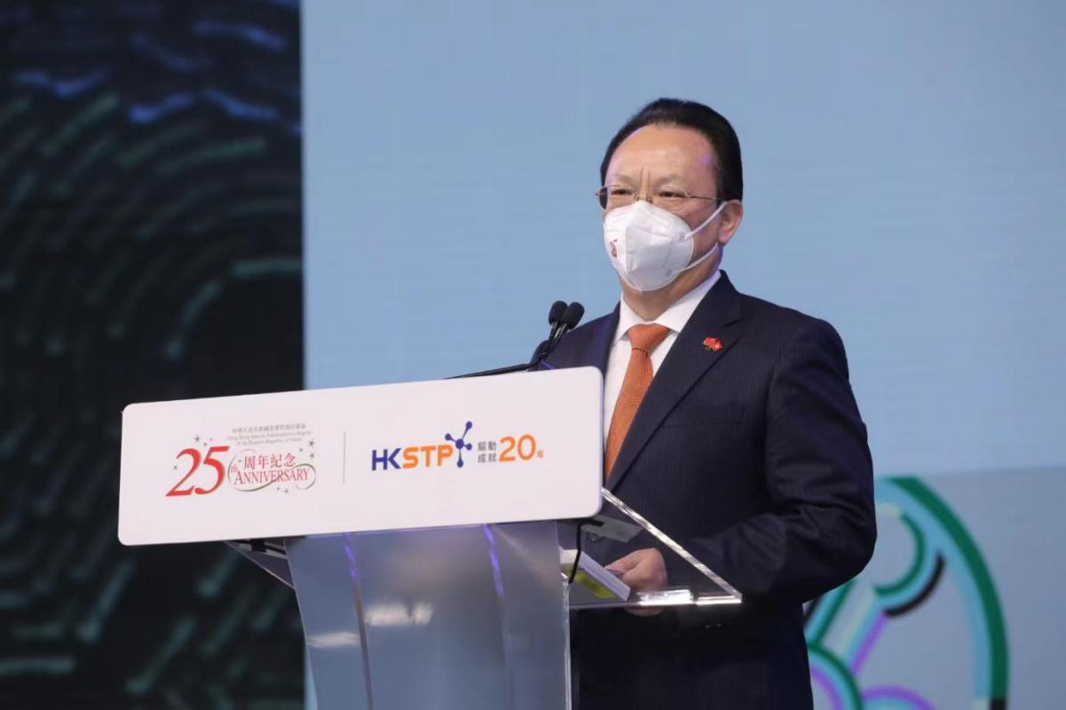 谭铁牛副主任在香港科技园公司20周年庆?;疃现麓?。(图片来源:中央政府驻港联络办)