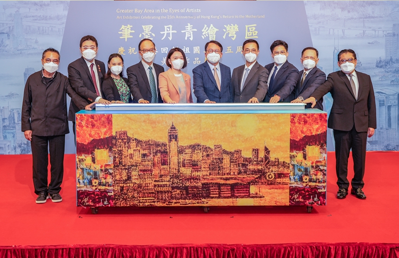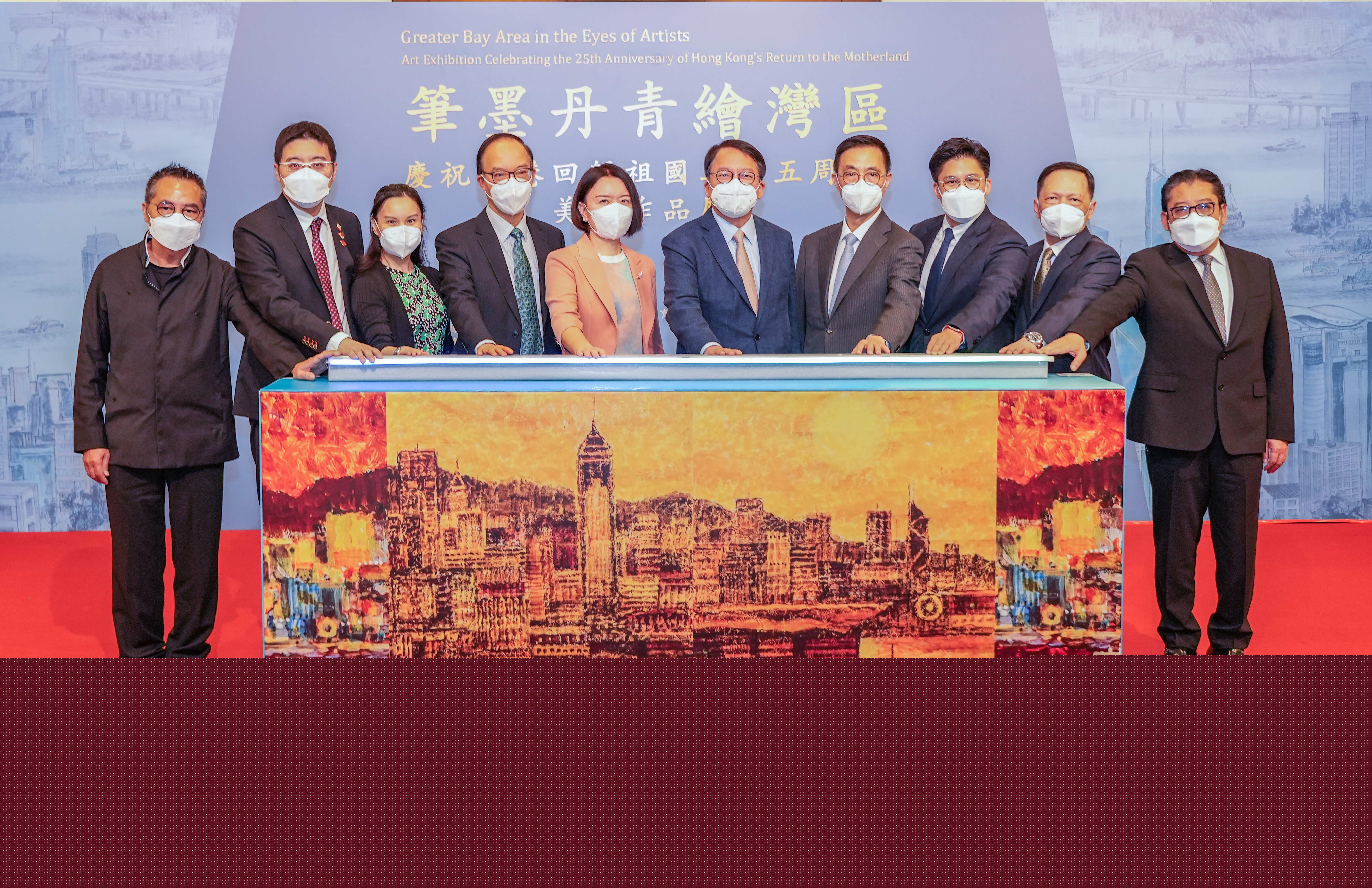 本网讯 7月9日,“笔墨丹青绘湾区——庆祝香港回归祖国25周年美术作品展”在香港中央图书馆开幕,香港中联办副主任卢新宁出席并致辞。香港特区政府政务司司长陈国基、文化体育及旅游局局长杨润雄、香港文联总会会长马逢国、香港各界庆委会筹委会首席会长庄紫祥等共同主礼,文化艺术界代表近100人出席活动。