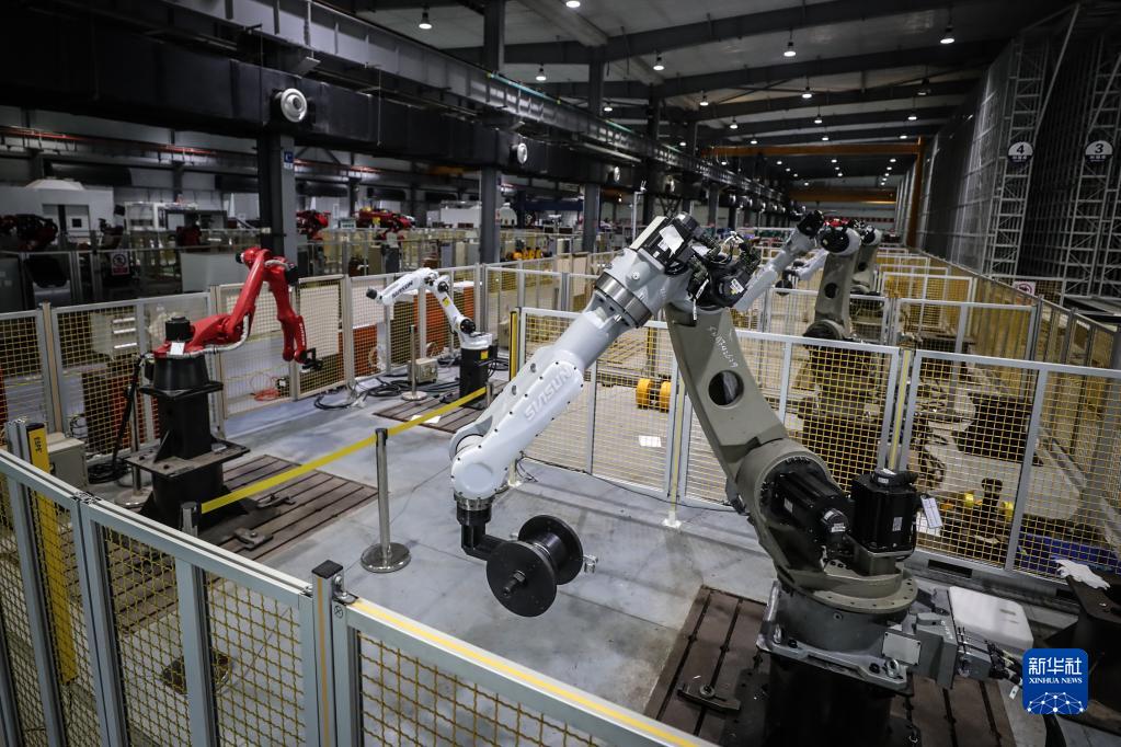 沈阳新松机器人自动化股份有限公司生产车间(2022年4月28日摄)。(新华社记者 潘昱龙 摄)