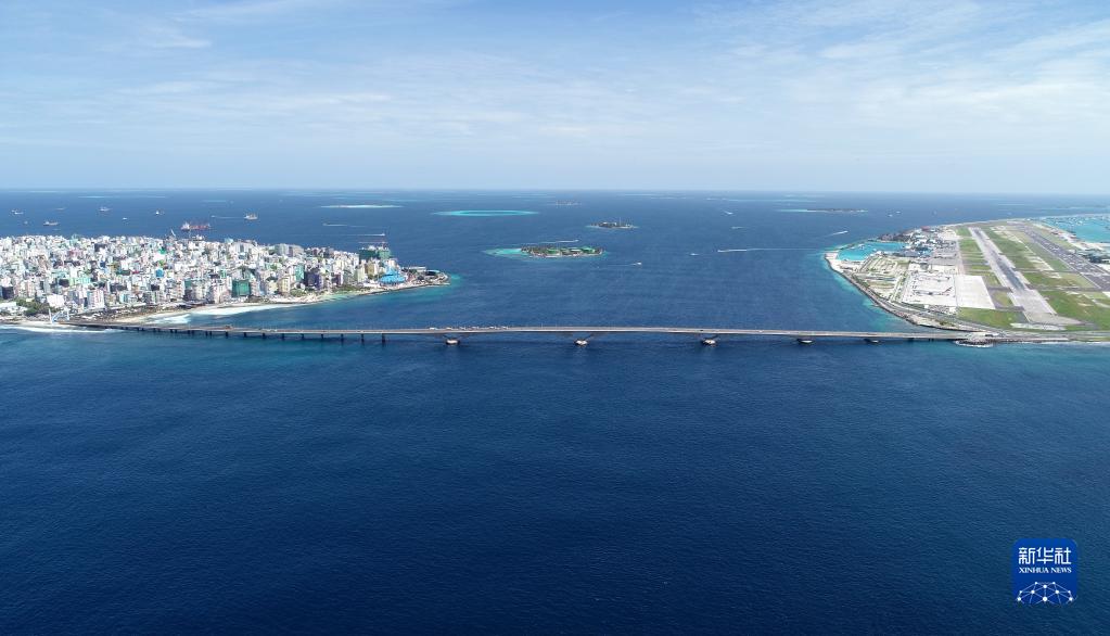 这是在马尔代夫航拍的连接首都马累和机场岛的中马友谊大桥(2019年8月30日摄)。(新华社发 王明亮摄)