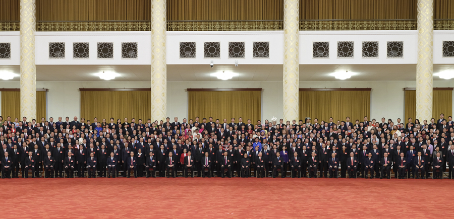 中共中央总书记、国家主席、中央军委主席习近平10月23日下午在人民大会堂亲切会见了出席党的二十大代表、特邀代表和列席人员,并同大家合影留念。