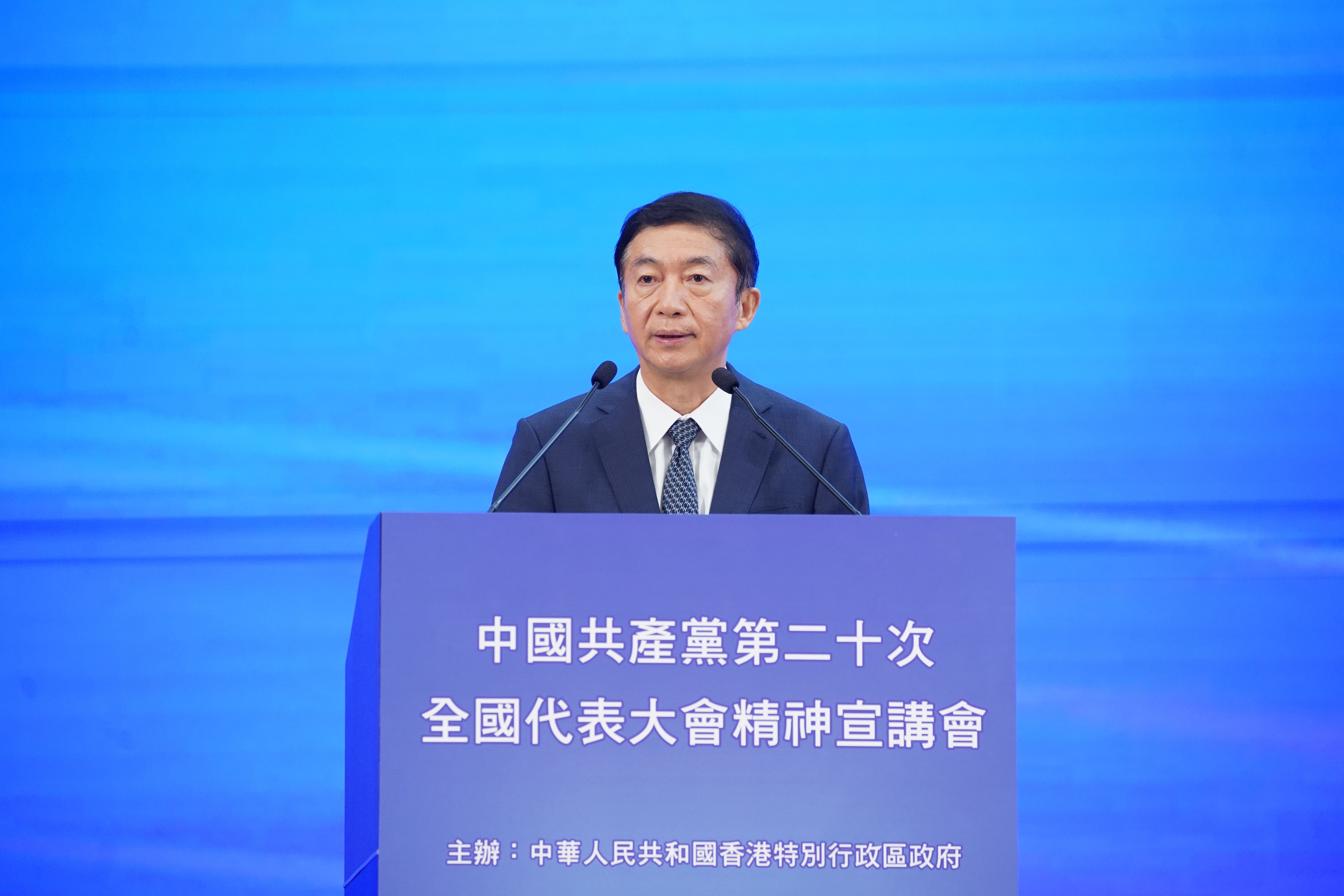 中央宣讲团成员、全国人大常委会法制工作委员会主任沈春耀围绕二十大的重要意义和主要成果、深入学习领会二十大报告的核心要义和重要内容、中国共产党党的建设和党的自我革命等方面进行了系统宣讲和阐述,详细解读了二十大报告关于“一国两制”和港澳工作的深刻论述。他表示,面对香港局势动荡变化,中央依照宪法和基本法有效实施对特别行政区的全面管治权,制定实施香港特别行政区维护国家安全法,落实“爱国者治港”原则,推动香港局势实现由乱到治的重大转折,这是过去五年党和国家成功应对重大挑战和考验的一个重要方面。