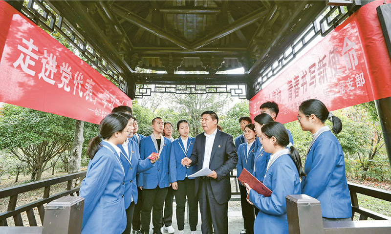 图为2022年11月21日,党的二十大代表在江苏淮安与大学生分享党的二十大报告学习感悟。(人民图片 赵启瑞/摄)