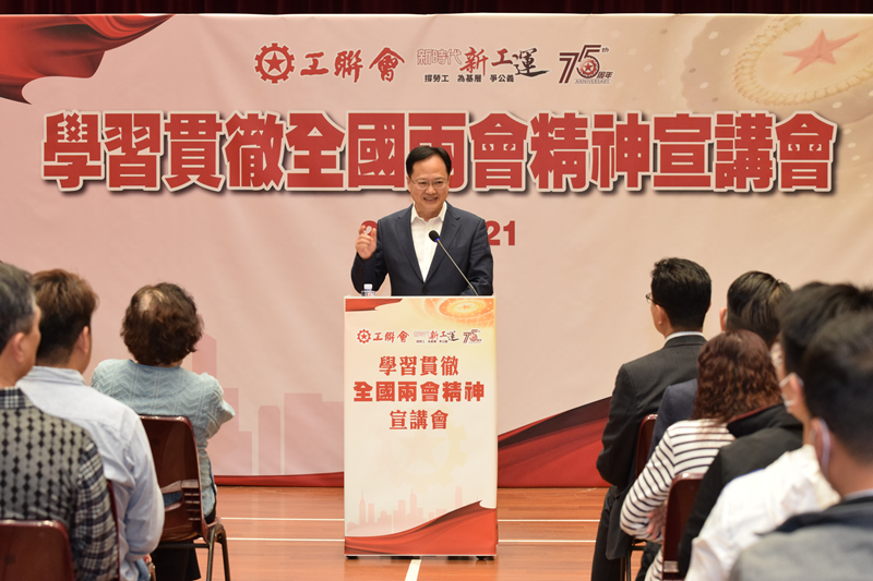陈冬出席工联会举办的学习贯彻全国两会精神宣讲会。(图片来源:工联会)