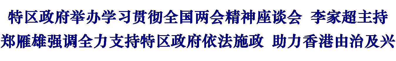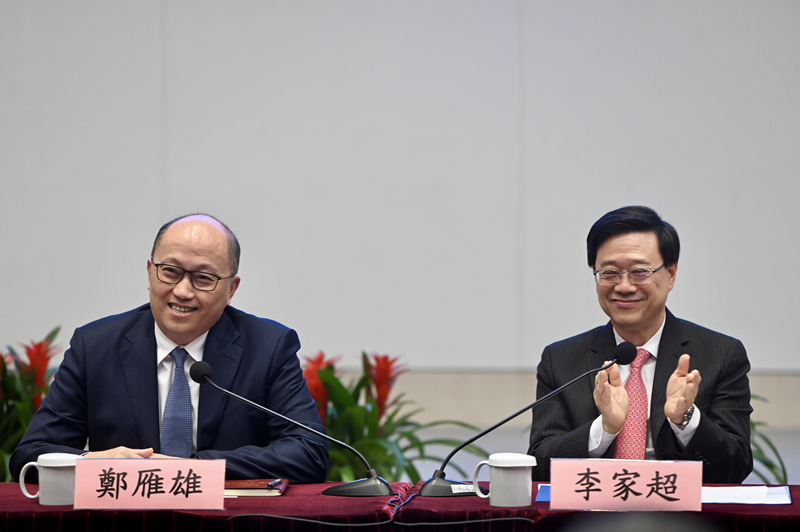 本网讯 3月28日,香港特区政府举办学习贯彻全国两会精神座谈会,行政长官李家超主持。中央政府驻港联络办主任郑雁雄应邀出席并作交流分享。特区政府官员、行政会议成员及立法会议员等约180人参加。