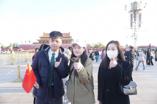 随后,三地青少年还并肩走进中国国家博物馆“复兴之路”陈列展厅。从新中国第一面五星红旗到行走外太空的宇航服,从黄埔军校的卒业证书到世界各国送给中国的国礼……一件件实物、一行行文字、一张张图片向大家展示了近代中国人挺起中华脊梁,努力实现中华民族伟大复兴中国梦的“追梦”之旅?!白婀那看?,需要包括港澳同胞在内的每个中华儿女的奋斗。”看完展览,大家深感自己作为新一代中国青少年肩负的责任与使命,期望与广大中华儿女和衷共济、筑梦中华。