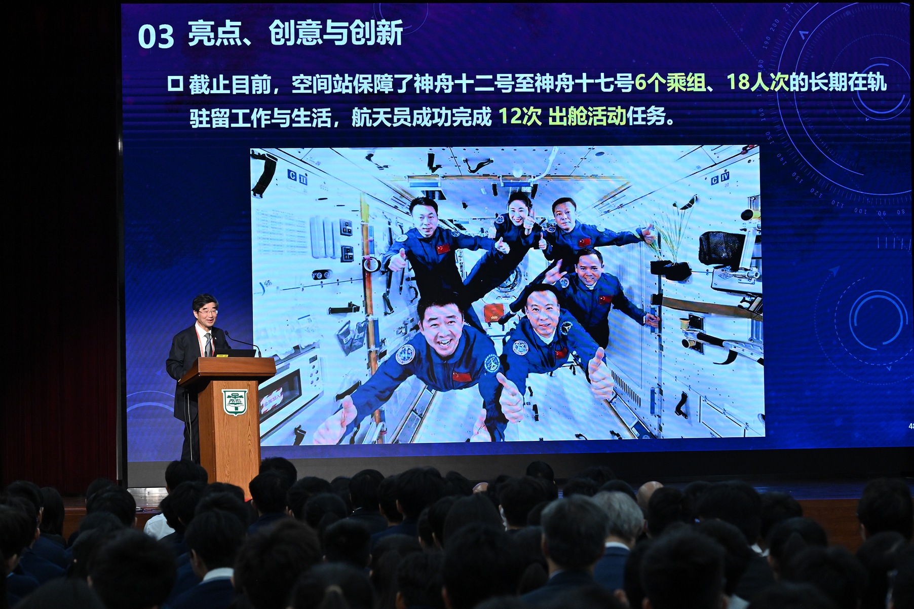 中国载人航天工程代表团11月29日继续在港访问,图示代表团成员甘克力出席在培侨中学举行的“中国载人航天工程代表团与中、小学生真情对话”活动。