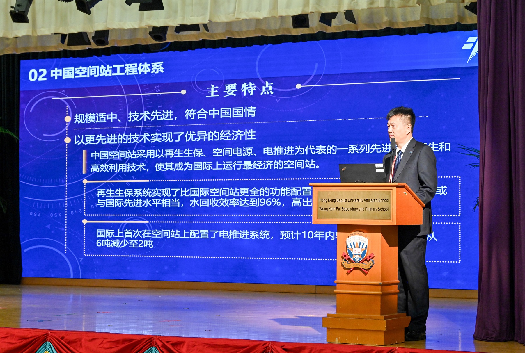 中国载人航天工程代表团11月29日继续在港访问,图示代表团成员出席在香港浸会大学附属学校王锦辉中小学(中学部)举行的“中国载人航天工程代表团与中、小学生真情对话”活动。