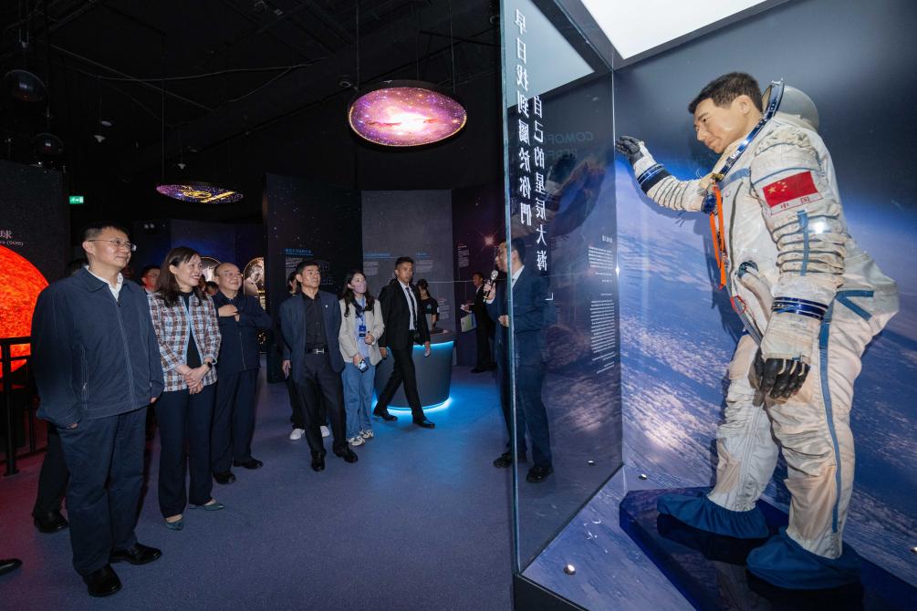 12月3日,中国载人航天工程代表团一行参观澳门科学馆。新华社记者 张金加 摄