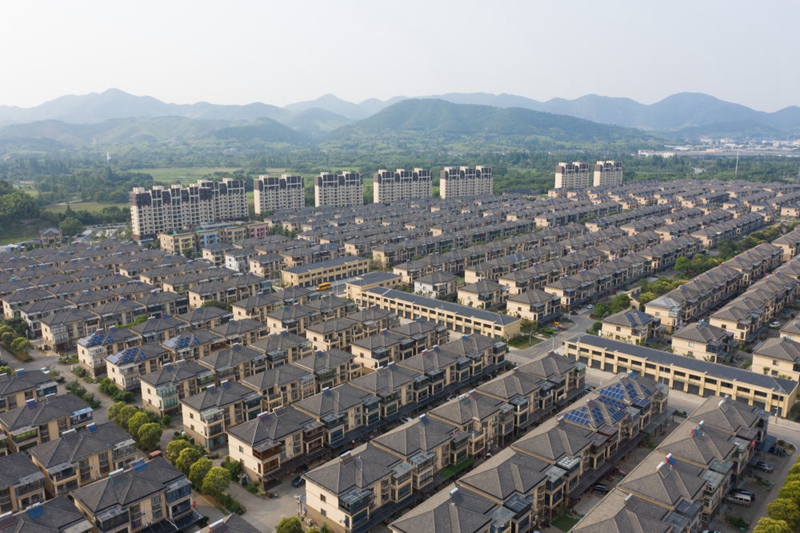 鸟瞰浙江省湖州市埭溪镇联山大社区(无人机照片,2023年6月21日摄)。在“千万工程”的指引下,埭溪镇全力发展美丽经济,乡村风貌也发生了巨大的变化。新华社记者 翁忻旸 摄
