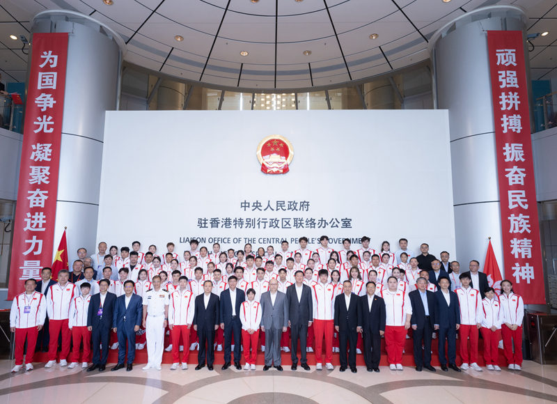 中央政府驻港联络办欢迎内地奥运健儿代表团到访。(图片来源:中央政府驻港联络办)