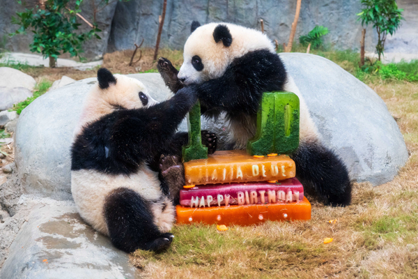 首对“港产”龙凤胎大熊猫正式命名为“加加”“得得”