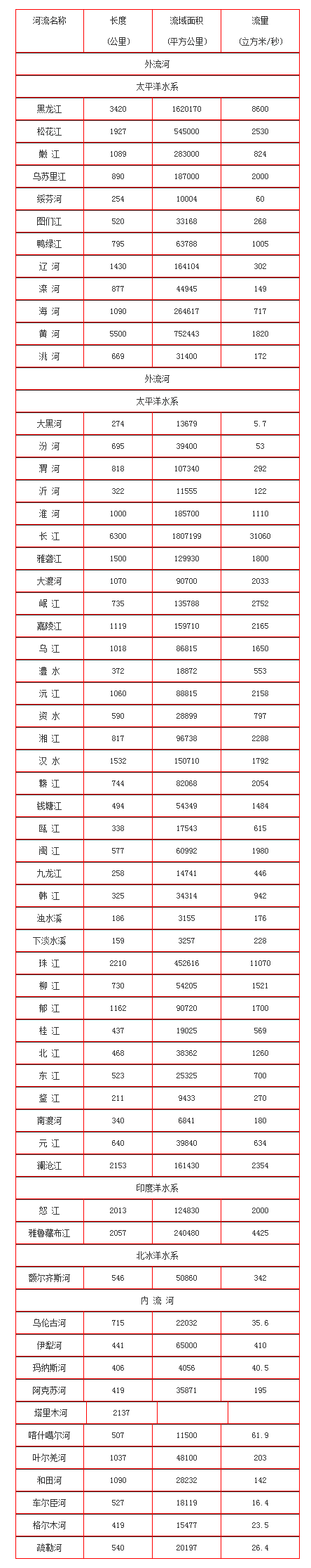 中国的河流,按照河流径流的循环形式,有注入海洋的外流河,也有与海洋不相沟通的内流河。